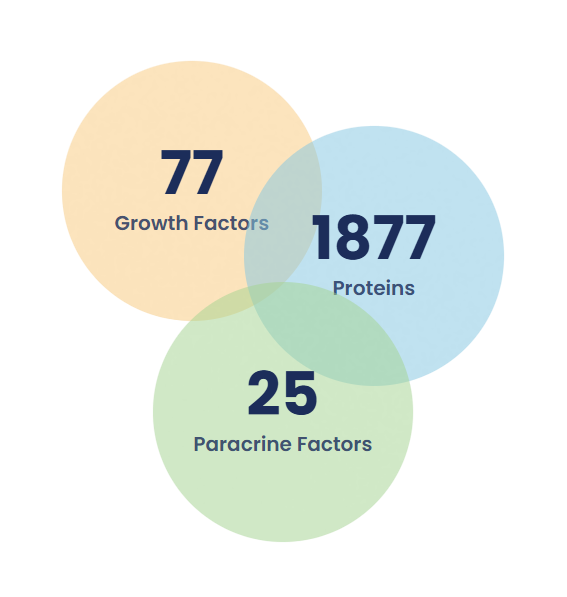 Includes exosomes, cellular messengers that facilitate tissue repair and reduce inflammation.